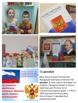 12 декабря в группе Радуга прошла беседа, посвящённая дню Конституции РФ. Цель которой, способствовать ознакомлению дошкольников с Конституцией РФ в интересной и доступной форме.